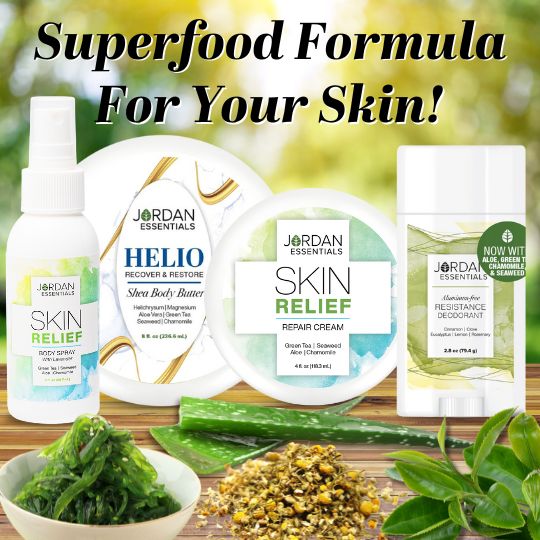 You can experience the benefits of this plant-powered blend in Jordan Essentials’ Helio Shea Butter, Skin ReliefAluminum-free Deodorant and other Phyto-Infused Skincare products. These formulas are designed to give your skin gentle yet effective nourishment for a radiant, healthy complexion.